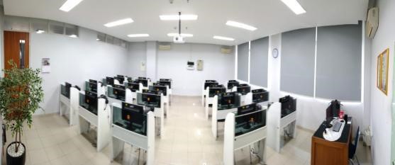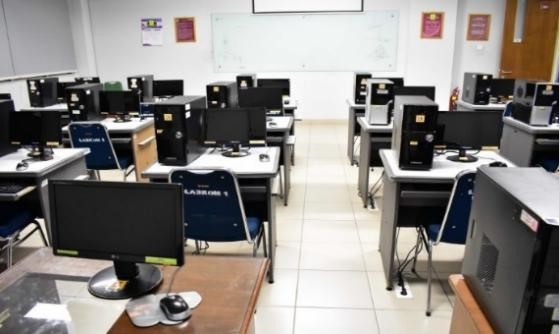 Kapasitas Ruang 24 orang, dilengkapi AC, LCD projector, Headset, Glassboard, jaringan Internet dan Wifi, meja, kursi. Dengan spesikasi Komputer : Core i3, menggunakan software Linguist