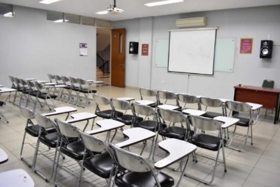 Dengan luas @64 m2, dilengkapi dengan AC, LCD Projektor, Glassboard, wifi, meja dan kursi