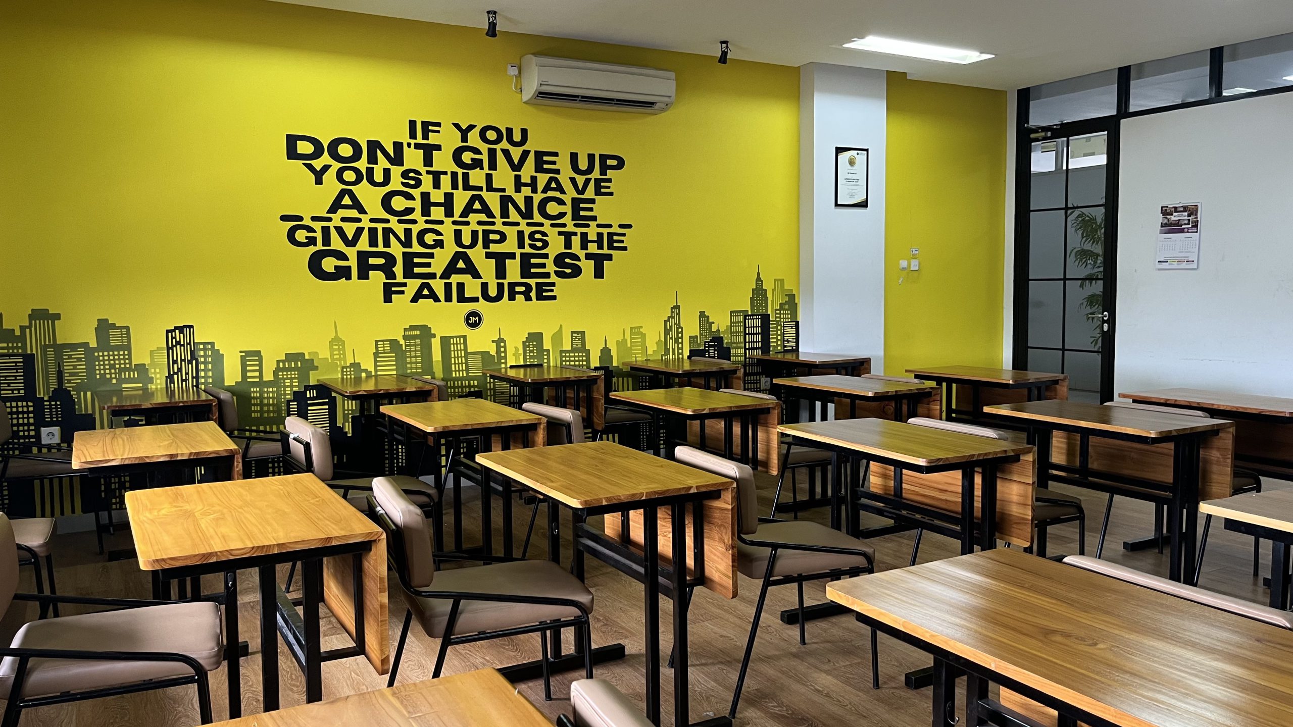 Kapasitas Ruang 40 orang, dilengkapi AC, LCD projector, Glassboard dan Wifi.
